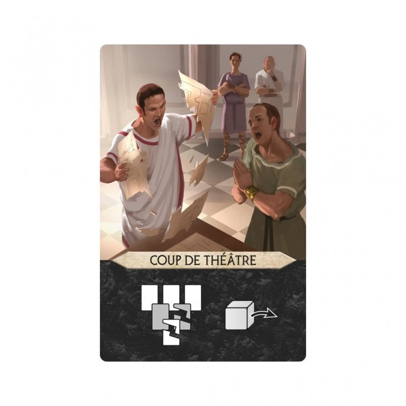 C’est dans les rangs du Sénat que sont prises les décisions qui façonnent la destinée d’une civilisation… et dans les couloirs sombres que les comploteurs œuvrent pour leur propre intérêt. Cette extension de 7 Wonders Duel met en scène des Sénateurs et leur influence sur les Chambres du Sénat. Tentez de contrôler ces Chambres pour bénéficier de Décrets, ou faites appel à des Comploteurs qui pourraient bien renverser la situation.