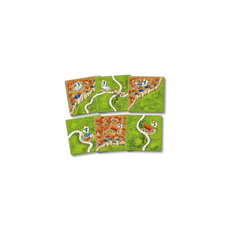 Les tuiles sont identifiées par un petit symbole qui vous permet de séparer facilement les tuiles de cette extension des autres tuiles de Carcassonne.