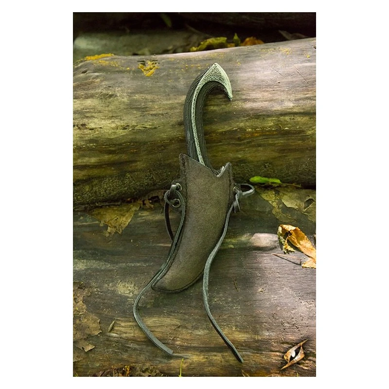Le porte-couteau de lancer de l’Elfe noir d’Epic Armoury est livré avec un couteau et est spécialement conçu pour ranger et protéger un couteau de lancer de l’Elfe noir d’Epic Armoury. Ce porte-couteau fait main s’attache à n’importe quelle ceinture ou baldaquin grâce à deux attaches en cuir. Une boucle de cuir supplémentaire se glisse autour du couteau et est fixée à l’aide d’un bouton, ce qui permet de garder l’arme à l’intérieur de l’étui même pendant les combats violents.