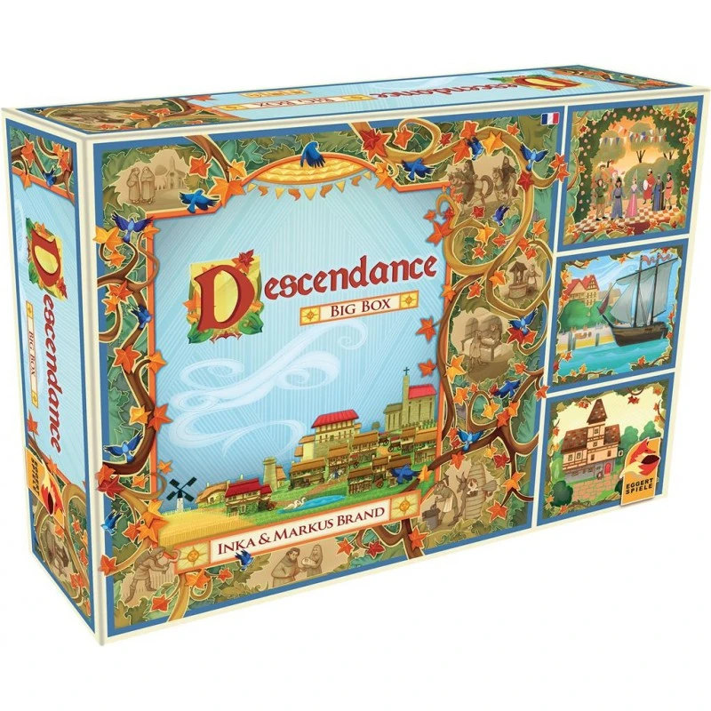 Descendance Big Box est la réédition, avec toutes les extensions, de Village, récompensé par le prix du jeu Expert de l’année au salon de Essen 2012, le fameux Kennerspiel des Jahres. C’est à la fois un jeu de pose d’ouvriers, de gestion de ressources, avec une pincée de notions de majorités.