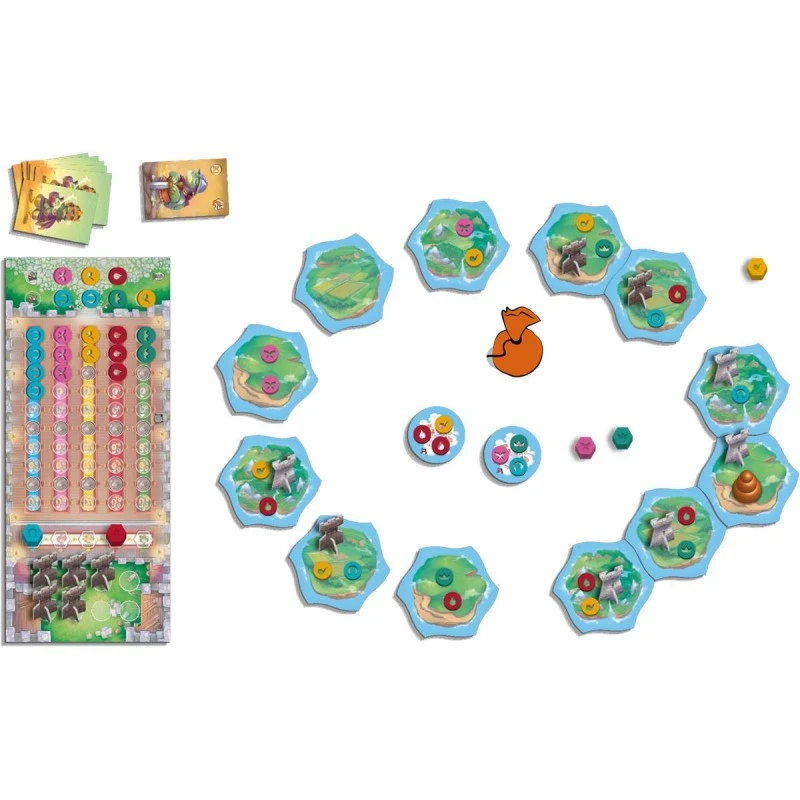 Mère Nature, quant à elle, se balade d’île en île et récompense l’école qui influence le plus grand nombre de créatures sur son île en l’autorisant à y construire une nouvelle tour. Votre but est simple : construire toutes vos tours avant les autres joueurs. Mais prenez garde ! La loyauté des créatures des cinq royaumes est très inconstante, et les professeurs changent facilement d’école. Des créatures qui, hier encore, étaient de votre côté pourraient changer d’allégeance en un battement d’ailes !