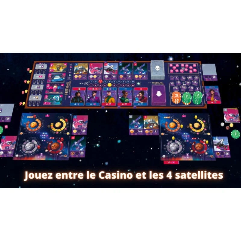 Pour gagner, il faut avoir le plus de Points de Victoire en fin de partie ! Ces points peuvent être gagnés via l’aménagement de vos satellites, vos Personnages recrutés, vos Technologies et les Objectifs remplis. Galileo Project mise sur un matériel soigné, avec 24 véritables jetons de Poker.