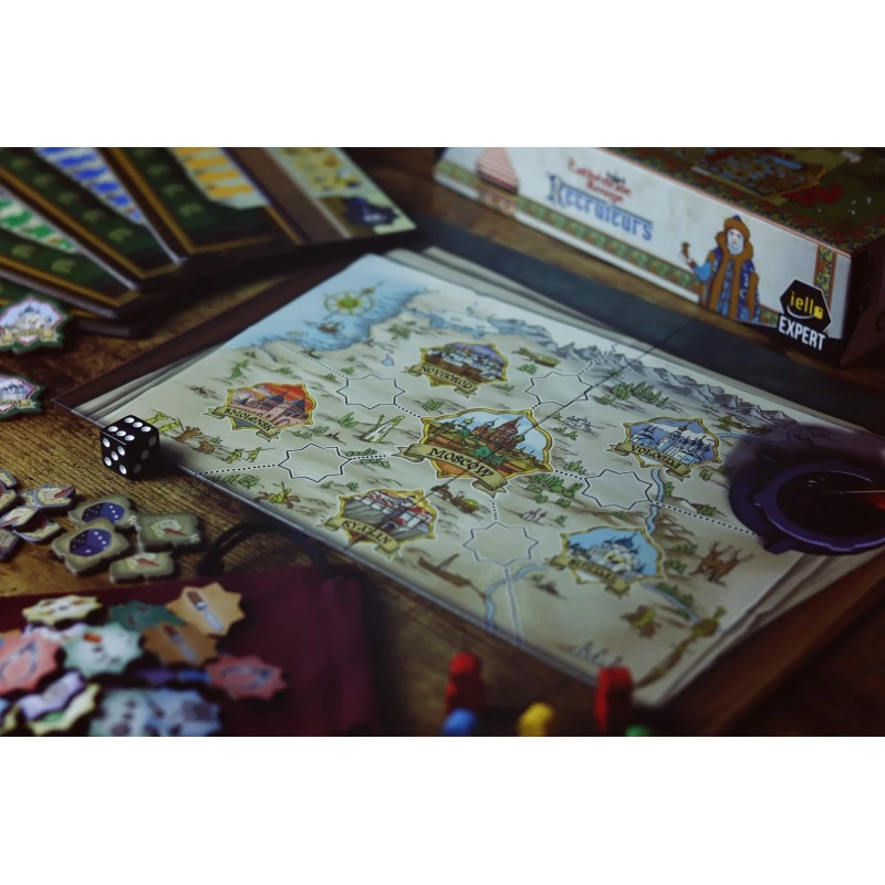 L’extension contient presque autant de contenu que le jeu original et emmène l’expérience dans une autre dimension. Dans Recruteurs, 10 nouvelles guildes sont à notre disposition et peuvent être combinées avec celles du jeu de base, 6 cartes de plan supplémentaires et une nouvelle carte pour le mode solo. Beaucoup de ces nouvelles guildes utilisent un nouveau module « Entrepreneurs », qui ajoute un nouveau plateau pour la Russie.