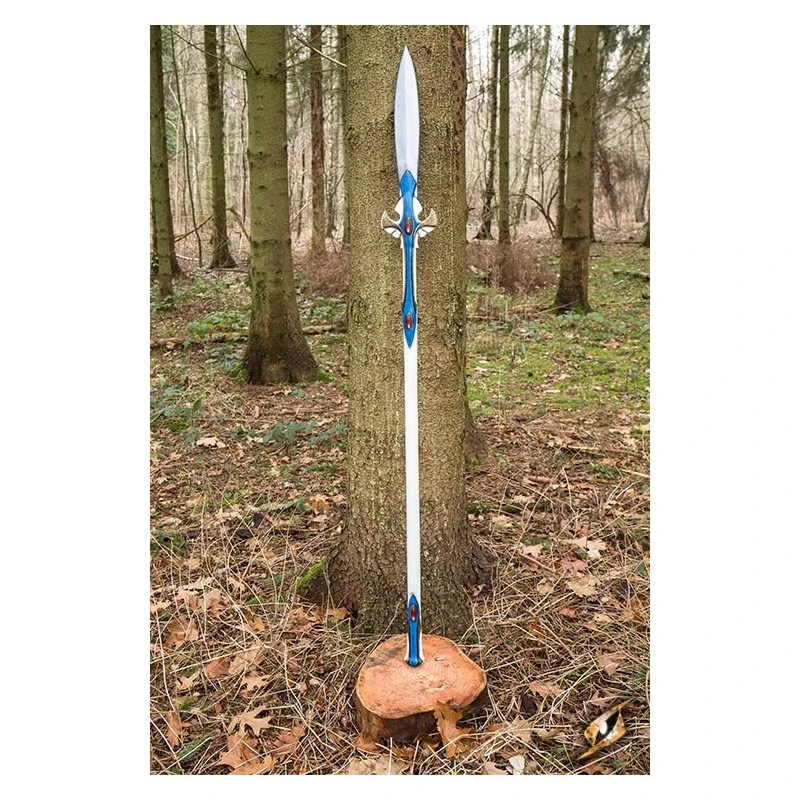 La lance de lumière d’Epic Armoury est une lance en latex de 190 cm inspirée par les paladins et les clercs de lumière. Dans les mains de ceux qui sont légalement bons, cette lance est dotée d’une lame de 38 cm de long et d’un bâton de 76 cm de long. Peinte et sculptée à la main, le résultat final est une magnifique arme fantastique dotée d’un fer de lance à double tranchant complexe. Des ailes bleues et blanches sculptées et des pierres rouges peintes à la main donnent un caractère angélique à la garde transversale et au pommeau.