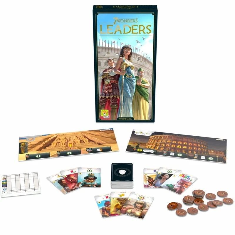 Leaders est une extension qui nécessite le jeu de base 7 Wonders Édition 2020 pour pouvoir être jouée. Cette version n’est pas compatible avec les versions précédentes de 7 Wonders.
