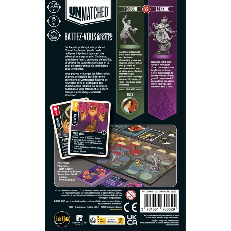 Avec ses quatre personnages emblématiques et son plateau de jeu recto verso, Unmatched propose des sensations de jeu uniques permettant de vivre l’intensité du jeu d’escarmouche sur un format bien plus compact et accessible. Proposant un fun immédiat et permettant de découvrir les capacités des héros au fil des batailles, Unmatched génère des parties ultra intenses et toujours variées.